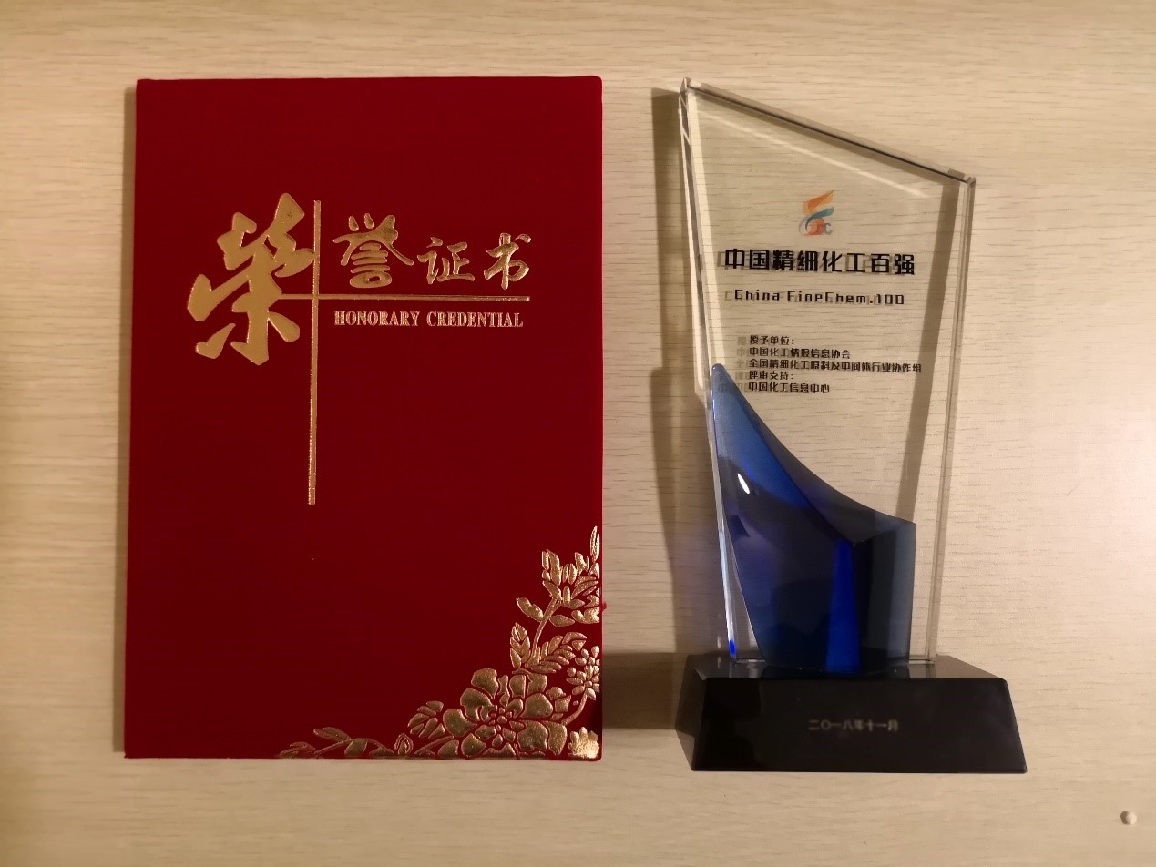 2018年118日,在山東鄒城舉辦的2018中國精細化工行業發展(鄒城)峰會暨中國精細化工百強發布會上,我司榮獲了“中國精細化工百強”稱號。
