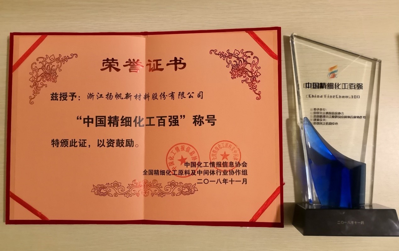 揚帆新材躋身中國精細化工100強