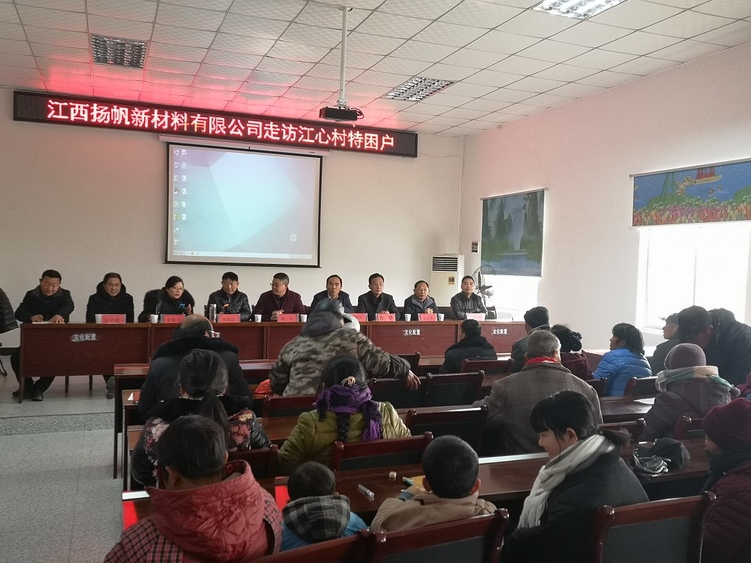 2019年1月20日,正值春節(jié)來臨之際,浙江揚帆新材料股份有限公司副總裁陶明,江西揚帆新材料有限公司總經(jīng)理陳育亮在彭澤縣政府扶貧辦副主任許金花,縣工商聯(lián)主任吳義群,縣質(zhì)監(jiān)局局長慈金兵,縣就業(yè)局副局長汪子正等領(lǐng)導(dǎo)的陪同下來到棉船鎮(zhèn)江心村,開展“產(chǎn)業(yè)幫扶及走訪、慰問特困黨員、貧困戶”活動。