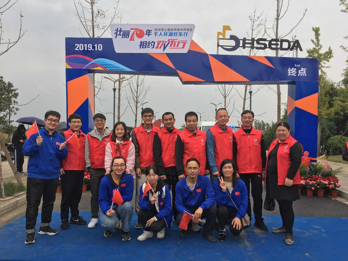 10月27日,在杭州灣上虞經(jīng)濟(jì)技術(shù)開(kāi)發(fā)區(qū)舉辦的主題為“壯麗70年,相約歡樂(lè)行”的環(huán)湖歡樂(lè)行活動(dòng)中,揚(yáng)帆新材積極響應(yīng)號(hào)召,選派5名員工作為企業(yè)代表參與環(huán)湖活動(dòng),另有9名員工作為志愿者提供后勤保障,在終點(diǎn)站服務(wù)各參與人員。
