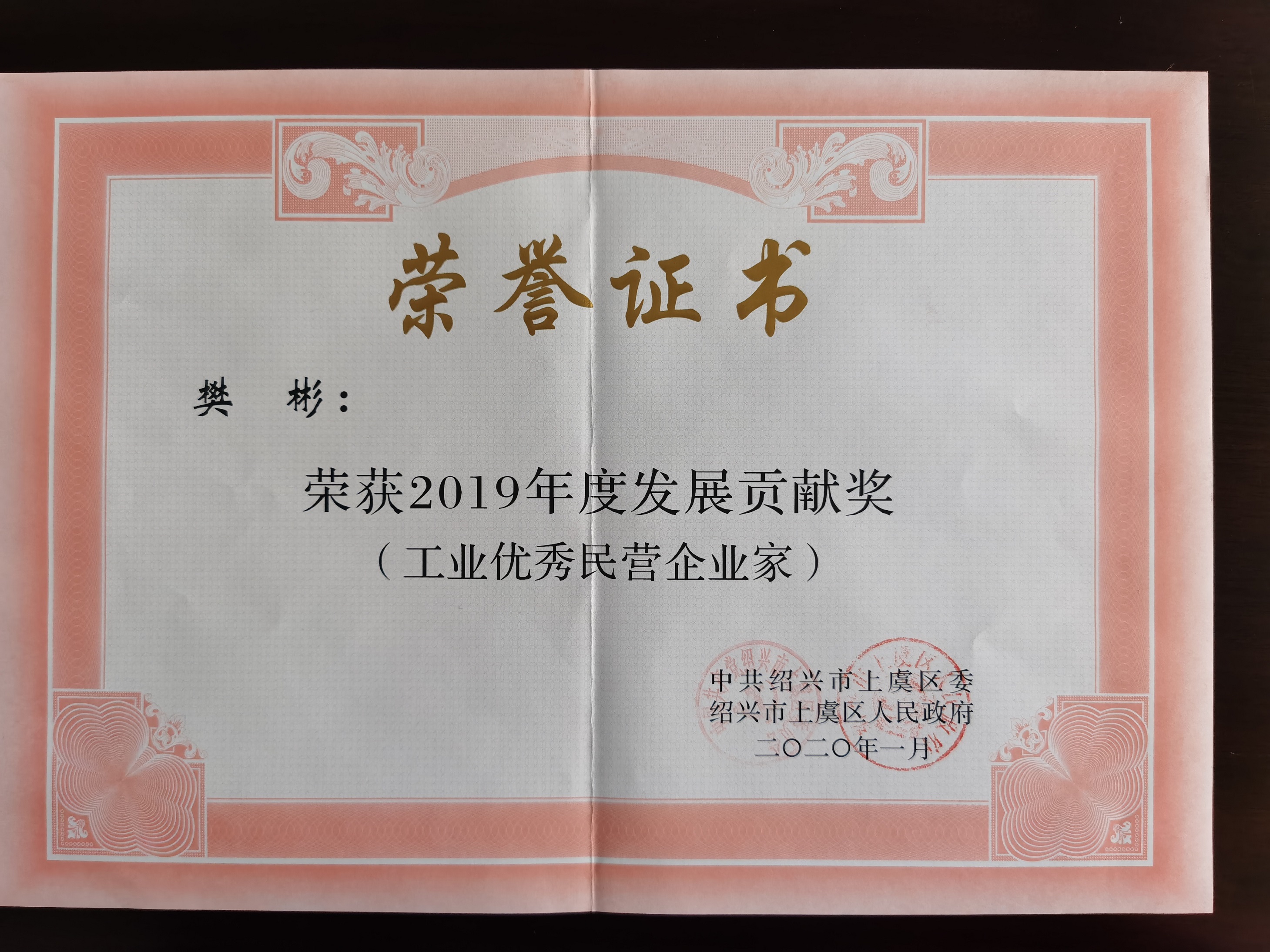 隨后,項政委為樊彬董事長頒發(fā)了上虞區(qū)2019年度發(fā)展貢獻獎。 此項殊榮即是上虞區(qū)政府對董事長樊彬個人努力的褒獎,也是對揚帆新材一年來為上虞經(jīng)濟發(fā)展所做貢獻的充分肯定。在過去的2019年,揚帆新材在董事長樊彬的帶領(lǐng)下,腳踏實地、突破創(chuàng)新,緊跟時代的腳步,以現(xiàn)代化的經(jīng)營管理理念為指導(dǎo),實現(xiàn)了企業(yè)經(jīng)濟效益的穩(wěn)步提升。