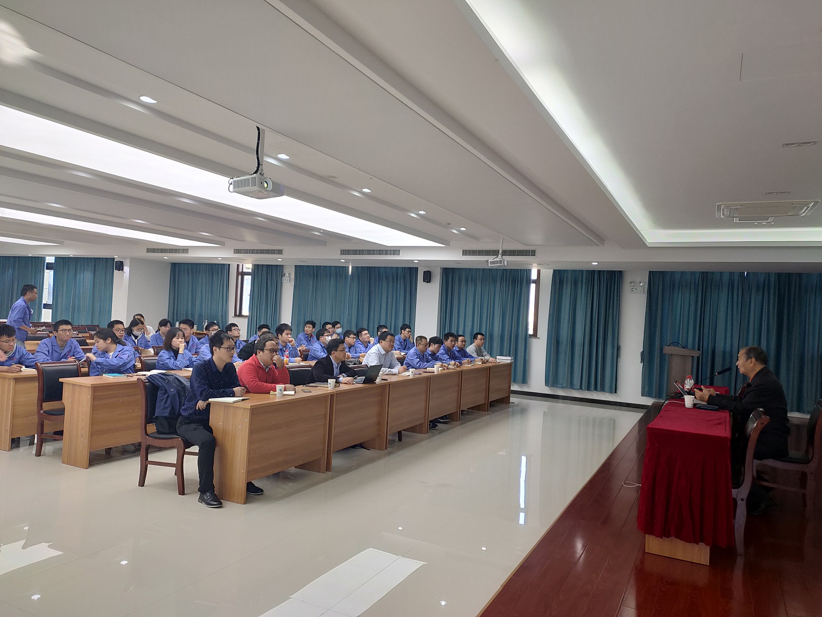 下午,金教授在研發大樓培訓會議室為研發技術人員帶來了一場關于UV油墨和輻射固化材料的主題講座。講座期間,金教授給大家介紹了UV油墨的性能和應用,并就輻射固化材料的技術發展情況進行了分享。金教授對我司在光引發劑領域的研發投入、生產情況表示了高度的贊揚與肯定,同時也指出我司可在光固化行業大展身手。稍后的討論和答疑環節,大家就光固化行業未來發展趨勢展開了熱烈的探討。