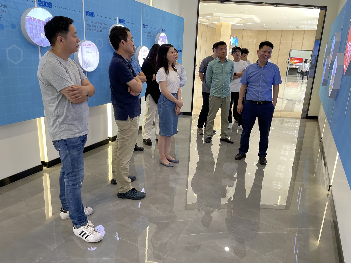 在李耀土總裁的帶領下,浙江大學MBA學生參觀了研發大樓企業發展(產品)展示廳和黨建展廳,了解了企業發展歷史、文化與社會責任,隨后參觀了公司中控室和研發實驗室。