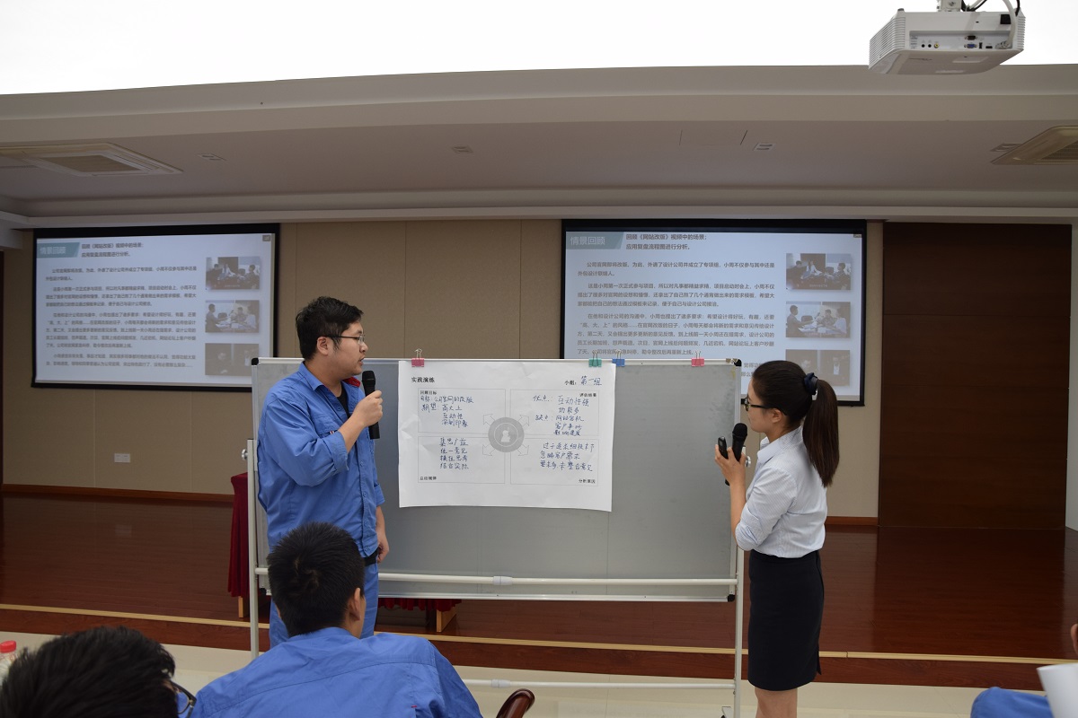 課程中的實踐演練部分,讓學員在已設定的情景下,利用已學習的內容進行分組討論互動,發表自己的觀點,既達到融會貫通,又寓教于樂,使培訓現場氣氛既有針對性,又生動活潑。