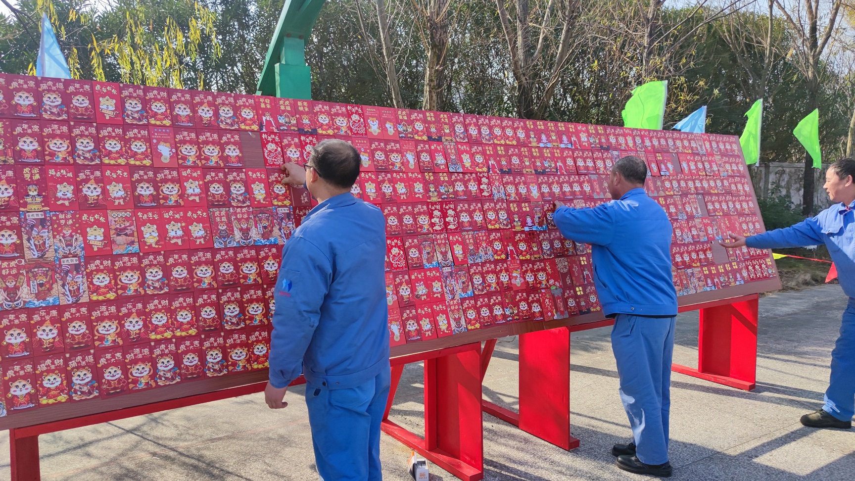 紅包墻是今天籃球場上最耀眼的道具,400個虎年卡通紅包組成的紅包墻,金光閃閃、虎虎生威,看著就充滿喜悅。此次紅包兌換確保人人有份,紅包兌換不限時間,隨到隨兌,未知的幸運讓每一個紅包都承載了不一樣地快樂,如同抽盲盒一般,時不時地聽到歡呼,那是誰又中了大獎啦。