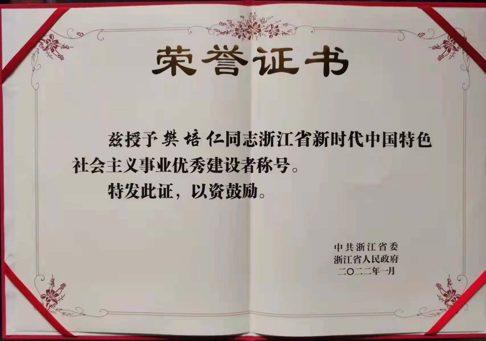 會(huì)上表彰了48位“2021浙江省新時(shí)代中國(guó)特色社會(huì)主義事業(yè)優(yōu)秀建設(shè)者”,揚(yáng)帆新材創(chuàng)始人、董事、控股股東浙江揚(yáng)帆控股集團(tuán)有限公司董事長(zhǎng)樊培仁先生繼2007年獲評(píng)“浙江省第二屆優(yōu)秀中國(guó)特色社會(huì)主義事業(yè)建設(shè)者”之后,再度獲此殊榮!