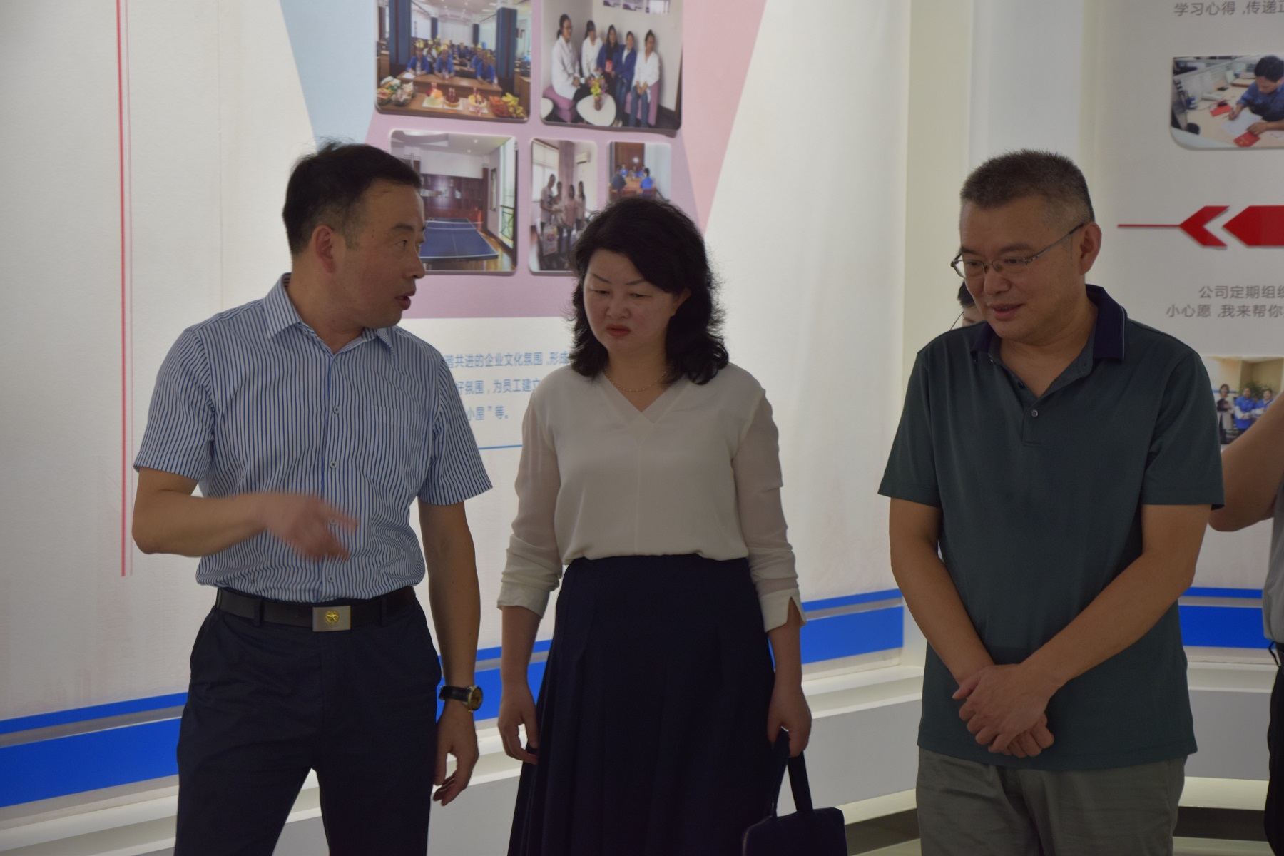 張永彬總經理陪同一行領導參觀公司文化展廳,并向其詳細介紹了揚帆新材的發展歷程,組織架構,核心產品,發明專利和歷史榮譽。