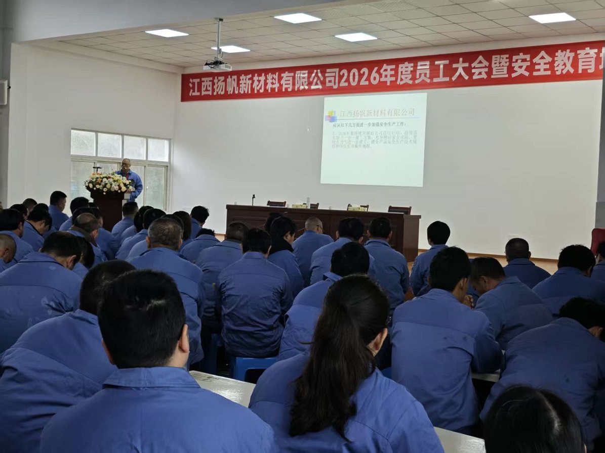 龍馬啟新程,聚力向未來。2月24日,江西揚(yáng)帆新材料有限公司2026年度員工大會(huì)暨安全教育培訓(xùn)會(huì)圓滿召開,全體員工齊聚一堂,總結(jié)過往發(fā)展成果、表彰先進(jìn)模范典型、部署新年工作目標(biāo)、筑牢安全生產(chǎn)防線,為新一年公司高質(zhì)量發(fā)展凝聚同心奮進(jìn)的磅礴力量。本次會(huì)議由公司副總經(jīng)理呂雪皓主持。